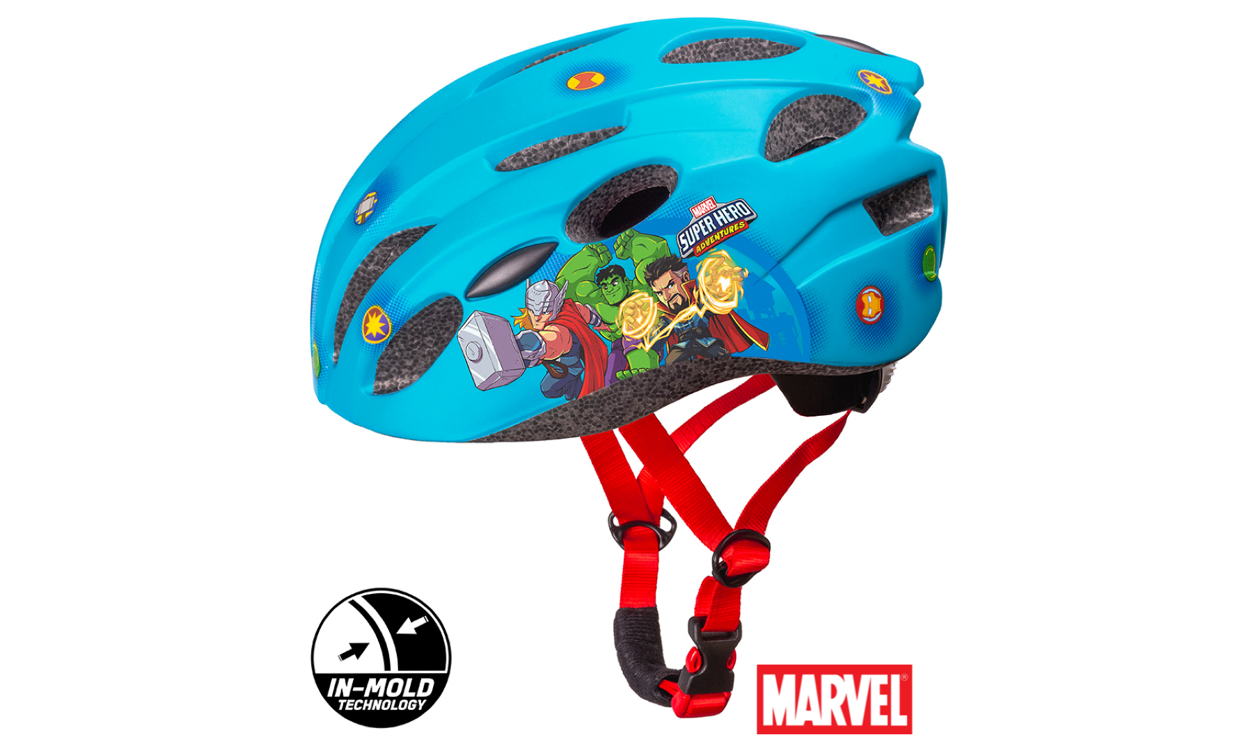The IN-MOLD technology provides the user comfort and safety, thanks to the stable structure of the helmet and low weight. The helmet includes comfortable, removable, washable soft pads. Multiple vents ensure effective air circulation. On the outside, it is decorated with high-quality prints with Disney and Marvel characters. Helmet is recommended for kids while using bikes, skates, scooters, etc.
